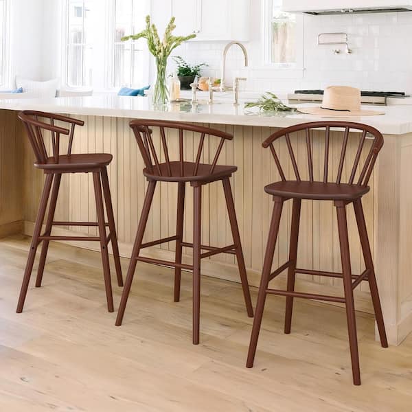 Winson Windsor 30 in. Walnut Solid Wood Bar Stool for Kitchen Island Counter Stool with Spindle Back Set of 3