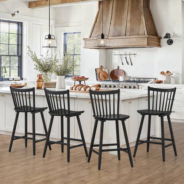 Winston 24 in. Black Classic Windsor Barstool Solid Wood Farmhouse Counter Height Stool with Spindle Back (Set of 4)