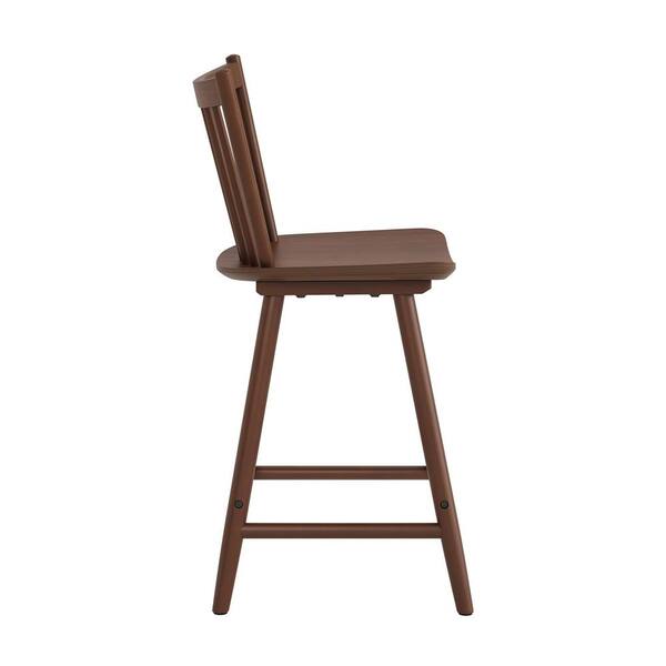 Winston 24 in. Brown Windsor Barstool Wooden Farmhouse Spindle Back Counter Height Stool for Kitchen Island (Set of 2)