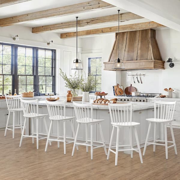 Winston 24 in. White Classic Windsor Barstool Solid Wood Farmhouse Counter Height Stool with Spindle Back (Set of 3)