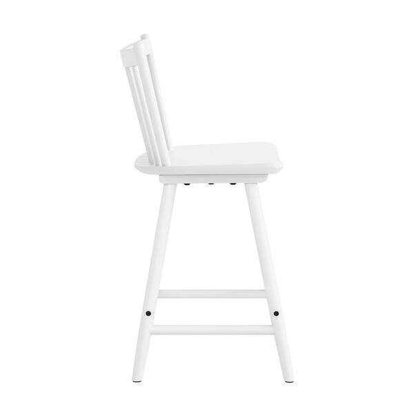 Winston 24 in. White Windsor Barstool Wooden Farmhouse Spindle Back Counter Height Stool for Kitchen Island (Set of 2)