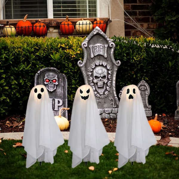 20 in. Height Halloween Battery Operated Lighted Ghosts Yard Stakes - Set of 3