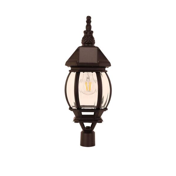 1-Light Black Cast Aluminum Solar Outdoor Rust Resistant Post Light Set with (1) 200 Lumen LED E26 Bulb Included