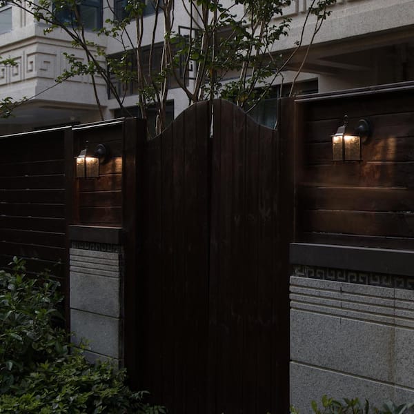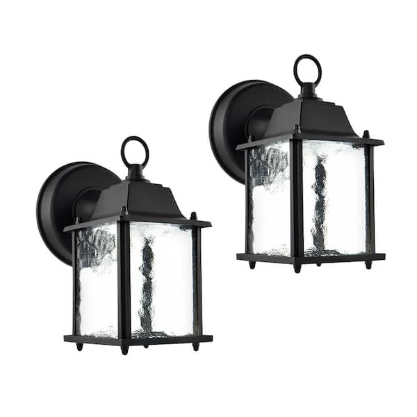 1-Light Black Integrated LED Outdoor Wall Lantern Sconce (2-Pack)