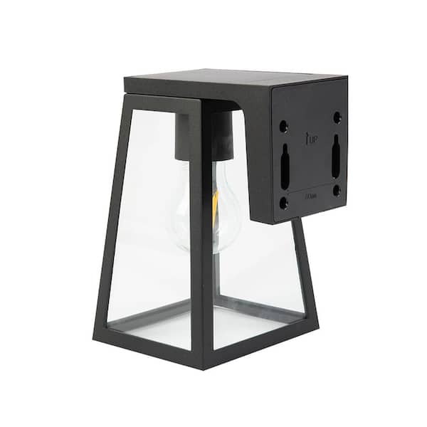 1-Light Black Solar Outdoor Wall Mount Lantern Sconce with Bulb Included Not Motion Sensing