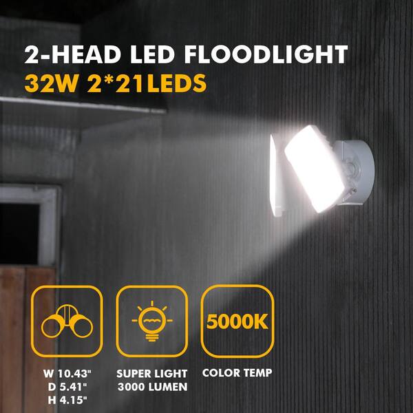 2-Head 300-Watt Equivalent Integrated LED White Outdoor Security Area Light