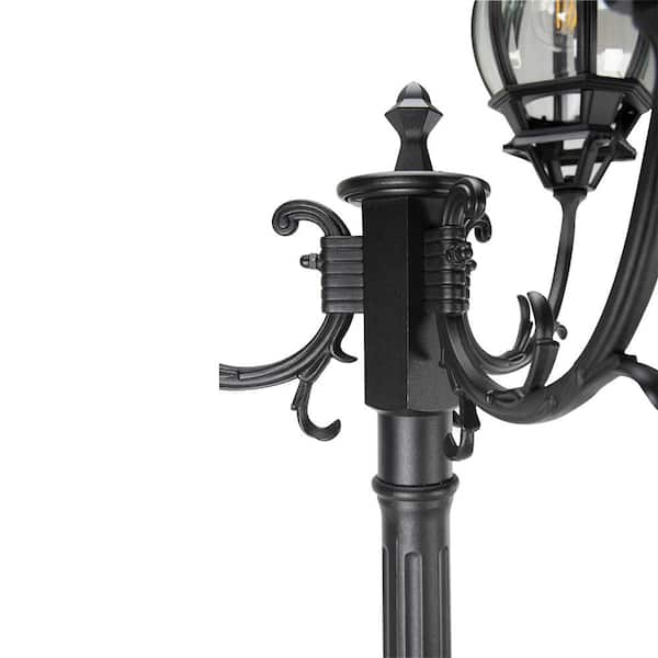 3-Head Black Cast Aluminum Solar Outdoor Rust Resistant Post Light Set with 3-E26 LED Bulbs Included