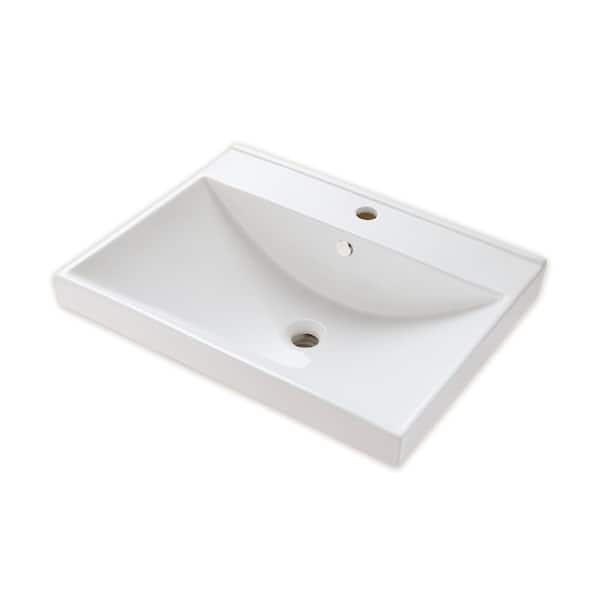 Rectangular 24-1/2 in. Drop-In Ceramic Bathroom Sink in White