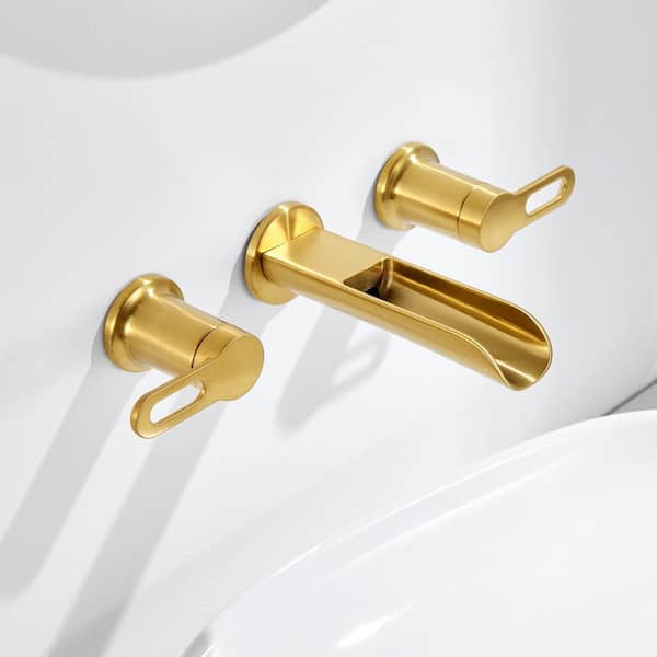 Vivid Fall 2-Handle Wall Mounted Bathroom Faucet with Valve in Brushed Gold