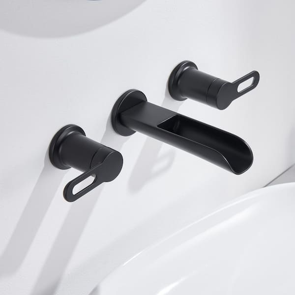 Vivid Fall 2-Handle Wall Mounted Bathroom Faucet with Valve in Matte Black