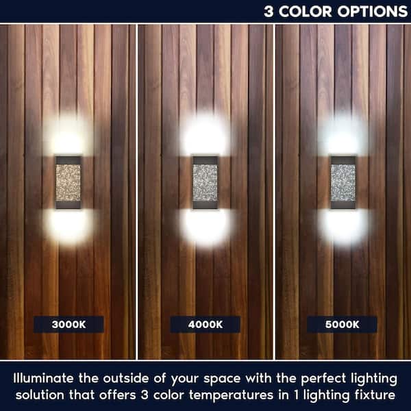 12 in. Black Outdoor LED Up and Down Wall Sconce Light 3CCT 3000K-5000K Seeded Bubble Glass 12-Watt ETL IP65 2-Pack