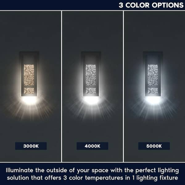 14 in Black Outdoor LED Wall Sconce Light Fixture 3CCT 3000K-5000K Seeded Bubble Glass 12-Watt ETL IP65