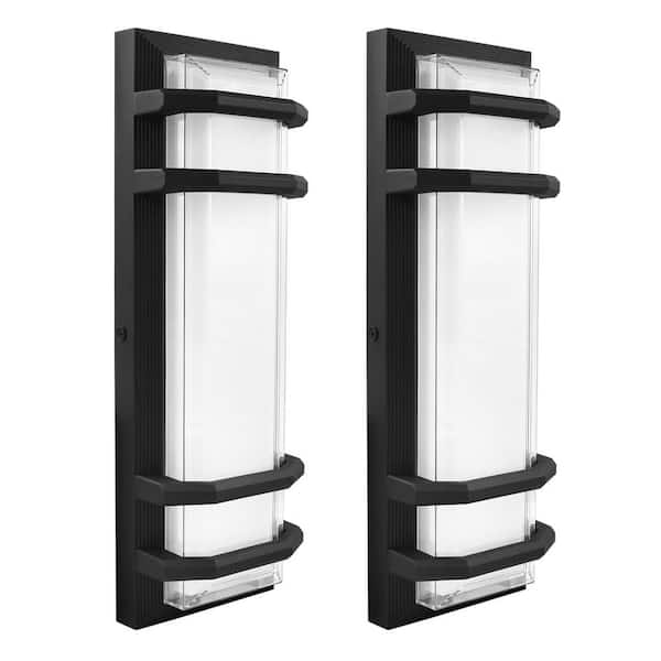 15.75 in Black Outdoor LED Wall Sconce Light Fixture 3CCT 3000K-5000K 15-Watt ETL Listed IP65 Waterproof (2-Pack)