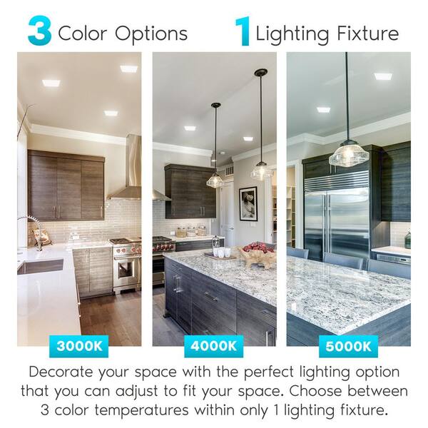 15-Watt 6 in. 900 Lumens Square 3 Color Selectable LED 3000K/4000K/5000K Flush Mount Dimmable Fixture (2-Pack)