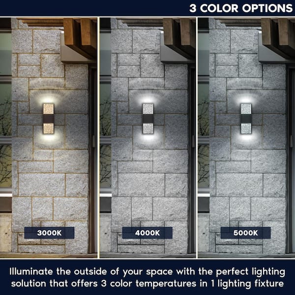 17 in. Black Outdoor LED Up Down Wall Sconce Light 3 CCT 3000K-5000K Bubble Glass 12-Watt ETL IP65 Waterproof