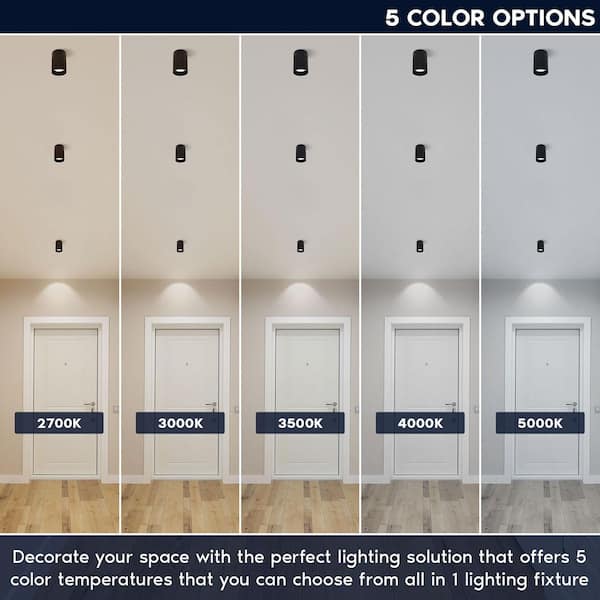 3 in. 15-Watt Color Selectable Integrated LED Cylinder Downlight Flush Mount 5CCT Dimmable 1000LM ETL Listed Black
