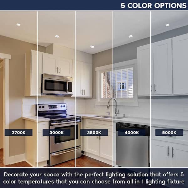 3 in. Square Integrated LED Recessed Light J-Box 8W 5CCT 740 Lumens Dimmable Canless Downlight Wet Rated IC Rated ETL