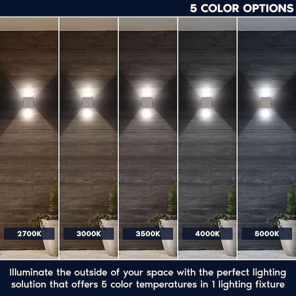 4.72 in. Brushed Nickel Outdoor LED Up Down Wall Sconce Light 5CCT 2700K-5000K 15-Watt ETL IP65 Waterproof