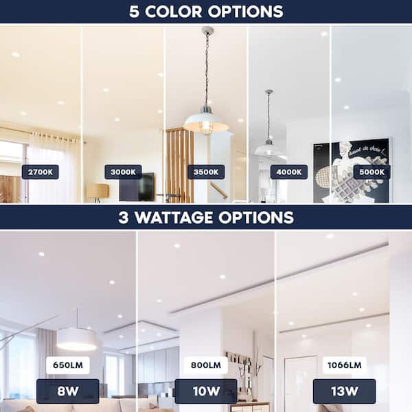 4 In. Integrated LED Canless Spotlight Recessed Light 5CCT Dimmable 650/800/1066LM CRI 90 8W/10W/13W IC Rated ETL 6 Pack