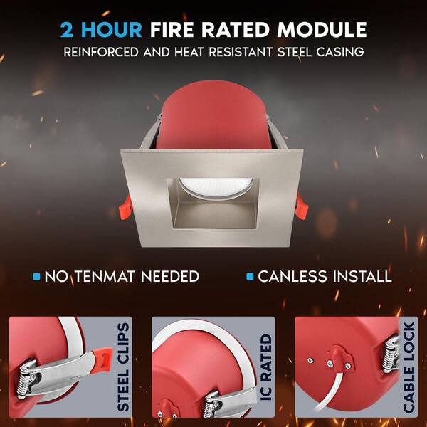 4" Square Integrated LED Recessed Light J-Box 5CCT 2-Hour Fire Rated 15-Watt 1000 38° Dimmable Wet Brushed Nickel 6-Pack