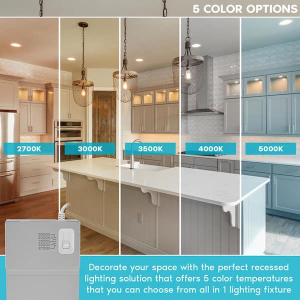 6 in. 14W CCT 3000K, 4000K, 5000K Canless Ultra Thin J-Box Remodel Integrated LED Recessed Light Kit Baffle