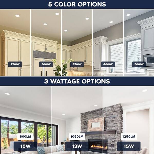 6 in. Integrated LED Recessed Light Canless Spotlight 10/13/15-Watt 5CCT 800/1050/1250LM IC Rated Wet Rated ETL 4 Pack