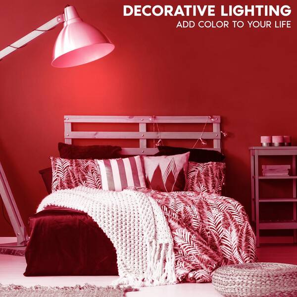 60-Watt Equivalent A19 Edison LED Red Light Bulb, 4.5-Watt, Colored Glass Filament, UL, E26 Base Indoor Outdoor (3-Pack)