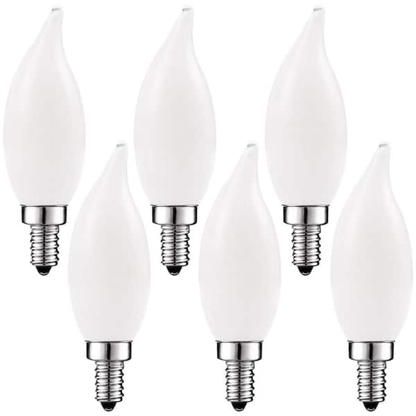 60-Watt Equivalent E12 Dimmable LED Light Bulbs Torpedo Flame Tip Glass 2700K Warm White (12-Pack)
