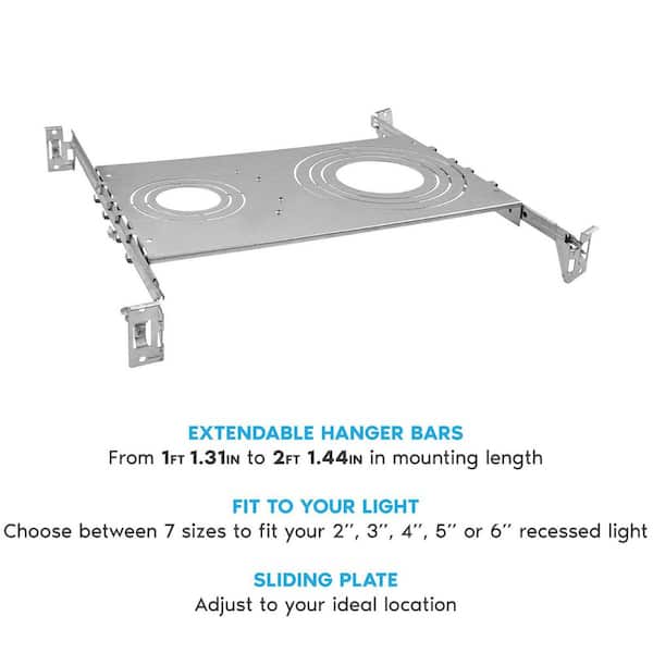 New Construction Mounting Plate 2-3-4-5-6 in. 7 Cutout Sizes Galvanized Steel Recessed Lighting Shallow Housing 4-Pack