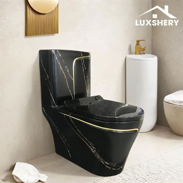 12 inch Rough In 1.8 gal. Dual Flush GPF Elongated 1-Piece Toilet in Black Seat Included