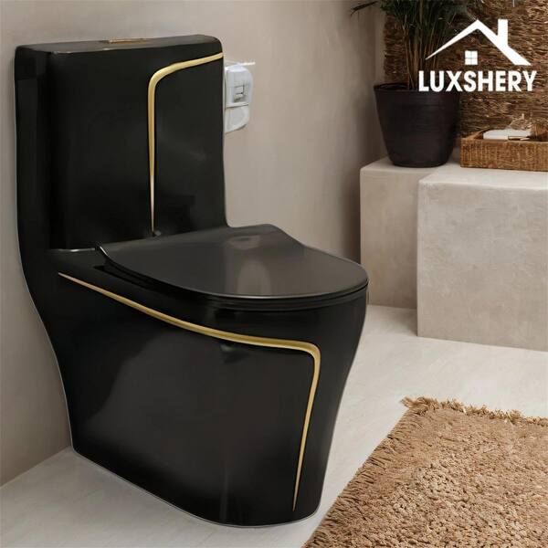 12 inch Rough In 1.85 gal. Dual Flush GPF Elongated 1-Piece Toilet in Black Seat Included