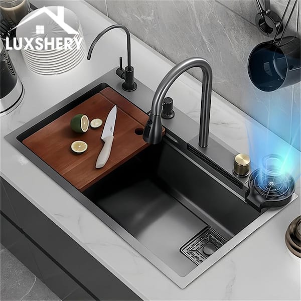 26.7 in. Drop-in/Undermount Single Bowl Stainless Kitchen Sink with Faucet and Basket Strainer