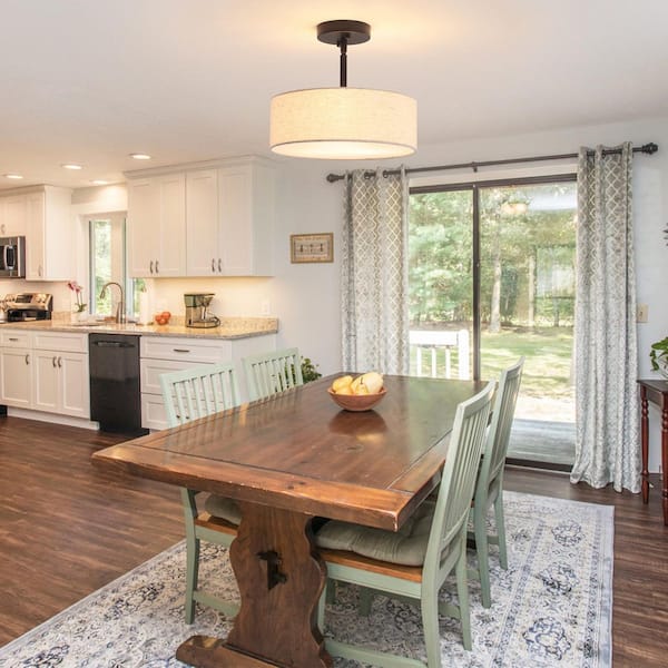 12.6 in. 3-Light Black Farmhouse Drum Semi-Flush Mount Light with Linen Cover