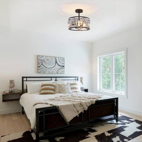 12.6 in. 3-Light Modern Black Semi Flush Mount Light with Glass Shade,No Bulbs Included