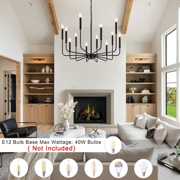 12-Light Black Candlestick Modern Chandelier Transitional Pendant Light for Dining Room