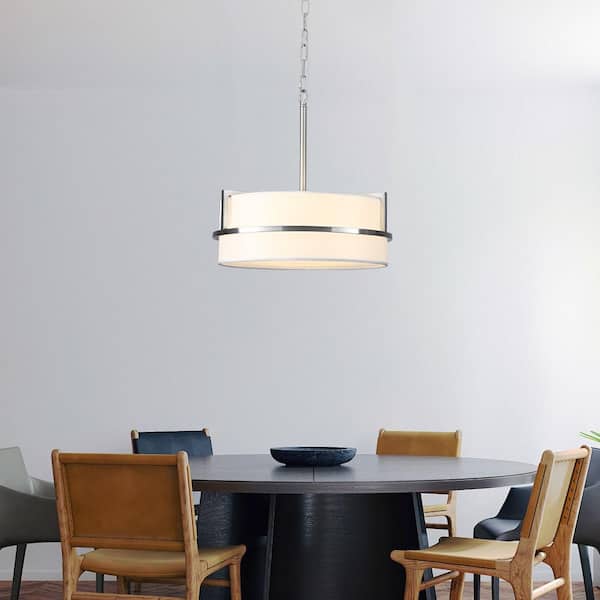 15. 74 in. 3-Light Nickel Classic Metal Circle Chandelier with White Fabric Drum Shape for Living Room Entryway Porch