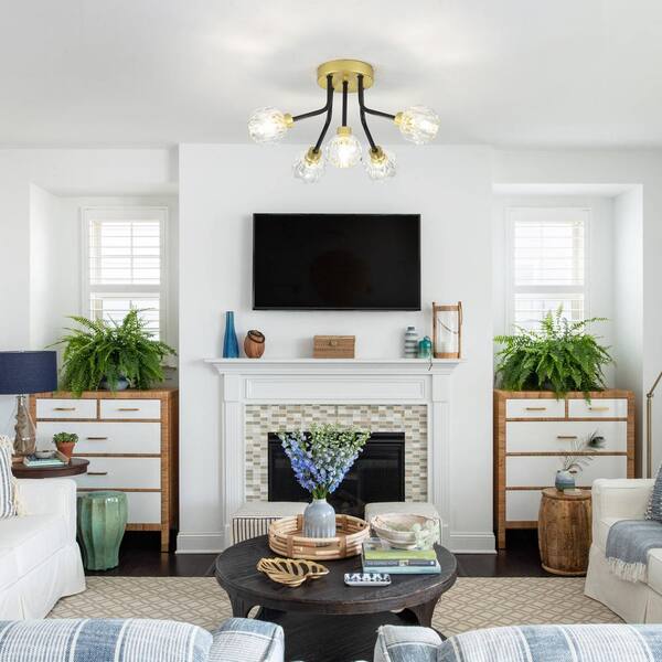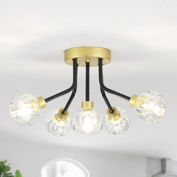 16.14 in. 5-Light Black/Gold Semi Flush Mount Chandelier for Hallway Entryway Dining Room with No Bulbs Included