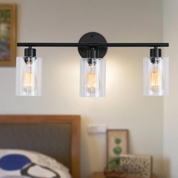 22.83 in. 3-Light Black Vanity Light with Clear Glass Shade