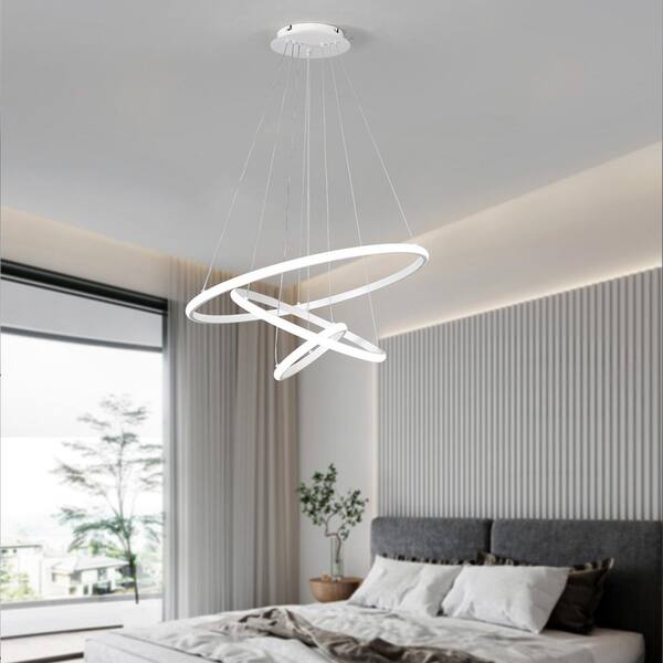 23.6 in. 3-Light White Modern Integrated LED Chandelier 3-Tier Pendant Light for Living Room