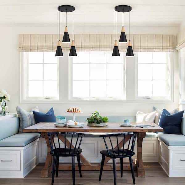 3-Light Black Cone Modern Pendant Light with Metal Shade for Kitchen Room