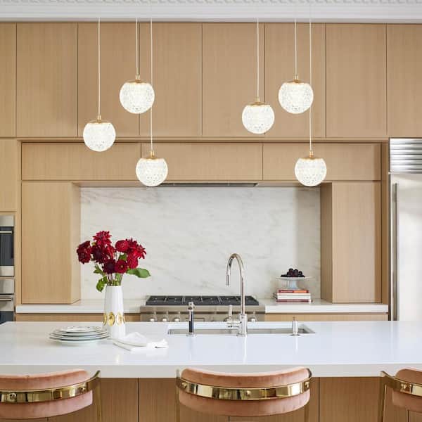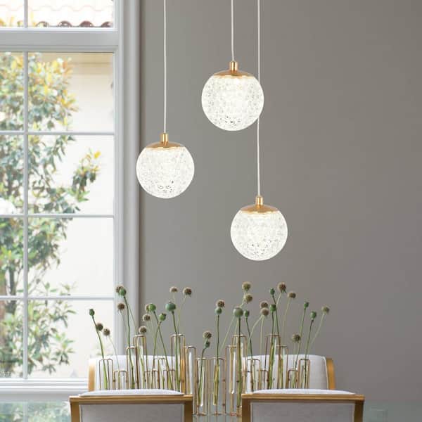 3-Light French Gold Integrated LED Pendant Light with Acrylic Shade