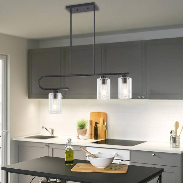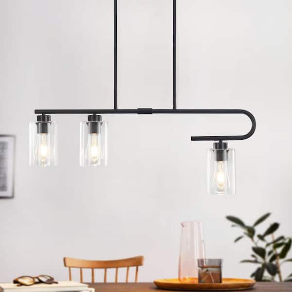 31. 5 in 3-Light Black Industrial Linear Chandelier Kitchen Island Pendant with Clear Glass Shades for Dining Room