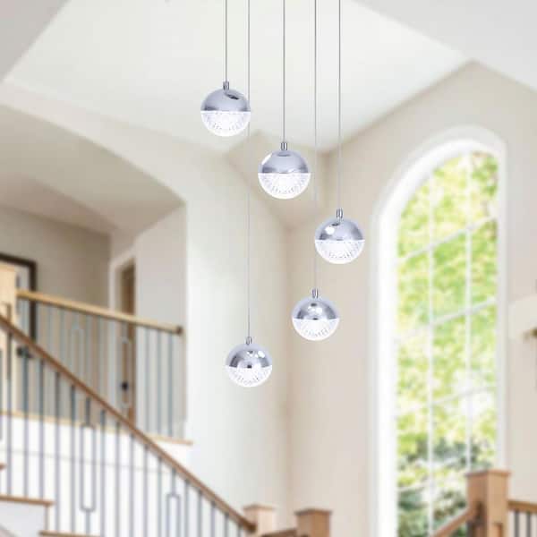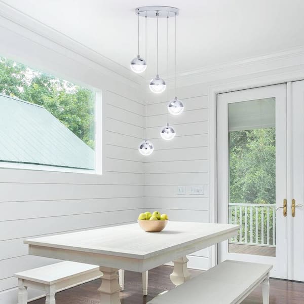 5-Light Chrome Integrated LED Pendant Light with Acrylic Shade
