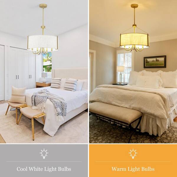 5-Light Gold Modern Chandelier Adjustable Height Drum Pendant Light for Kitchen Island