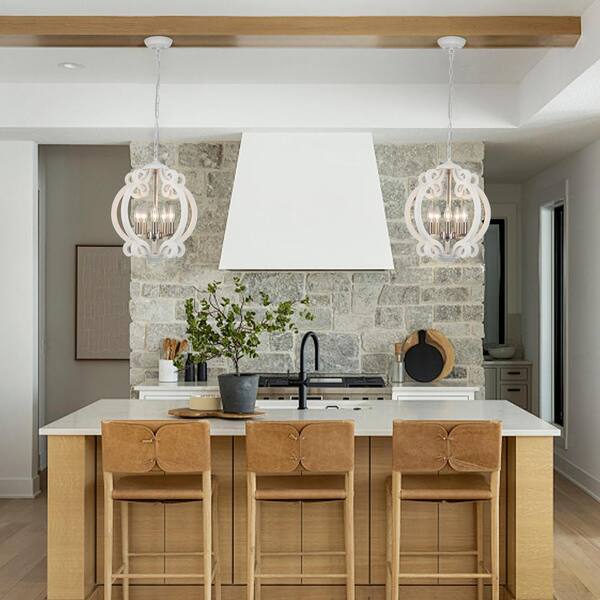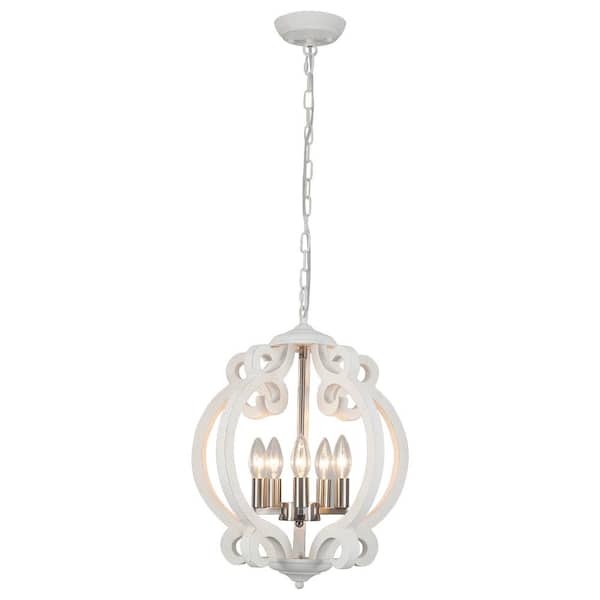 5-Light Nickel & White Farmhouse Dimmable Global Lantern Chandelier Adjustable Kitchen Island Foyer Living Room