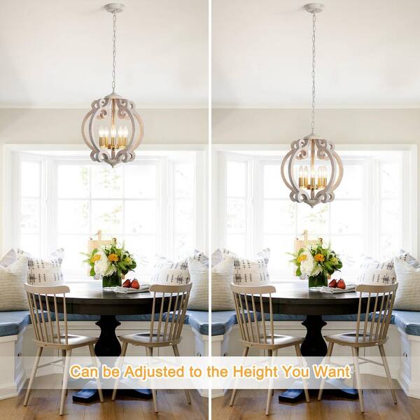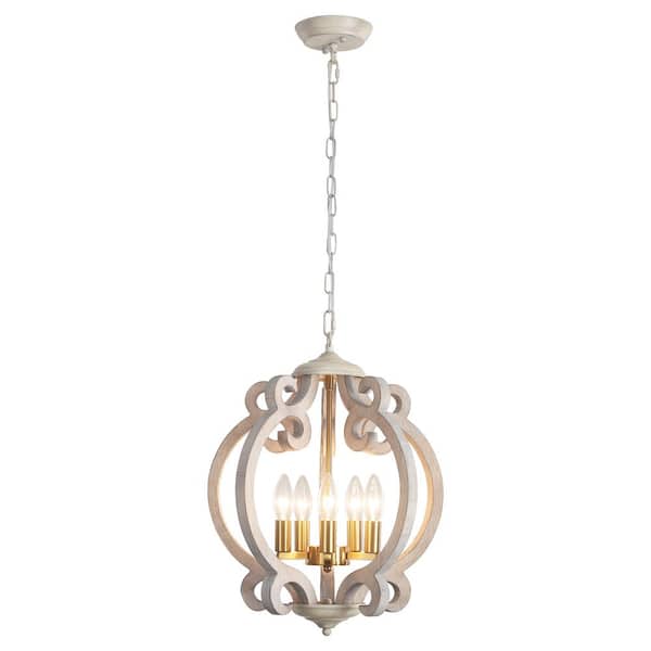 5-Light Vintage Beige Farmhouse Dimmable Global Lantern Chandelier Adjustable Kitchen Island Foyer Living Room