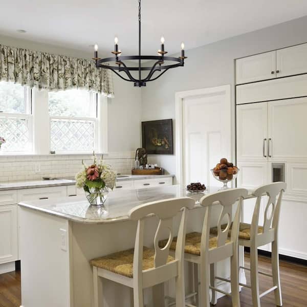 6-Light Black Dimmable Wagon Wheel Chandelier for Foyer with No Bulbs Included