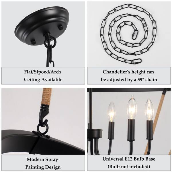 6-Light Black Farmhouse 2 Tiers Wagon Wheel Chandelier for Bedroom