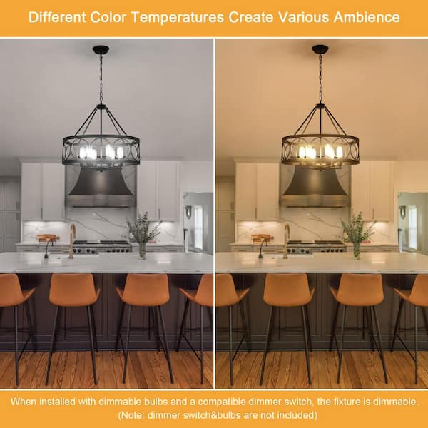 6-Light Black Farmhouse Chandelier with Metal Shade for Dining Room