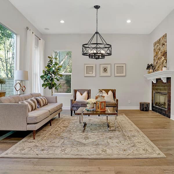 6-Light Black Farmhouse Chandeliers Drum Chandelier with Metal Shade for Dining Rooms